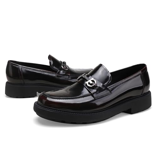 Men's Luxury Genuine Leather Dress Loafers, Casual Buckle Slip on Loafers Moc-Toe Business Dress Shoes Party Wedding Slip-on Loafer for Mens