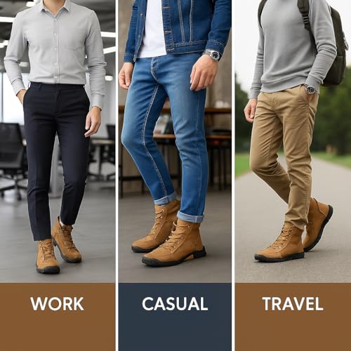 Men's Orthopedic Waterproof Leather Work Boots - Wide Width, Arch Support, Comfortable Handmade Outdoor Ankle Boots