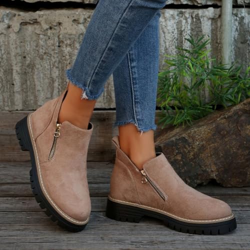 Ankle Boots for Women 2025 Low Heel Chunky Platform Heeled Short Booties, Non Slip Outsole, for Outdoor Walking Fall Shoes