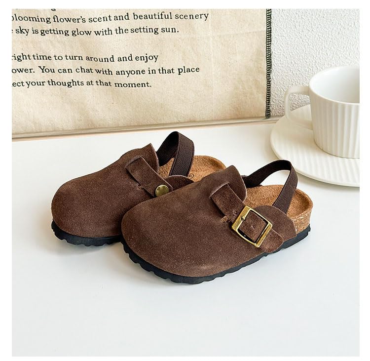 Kids Suede Clogs Toddler Clogs Boys Girls Sandals Cork Adjustable Buckle Mules