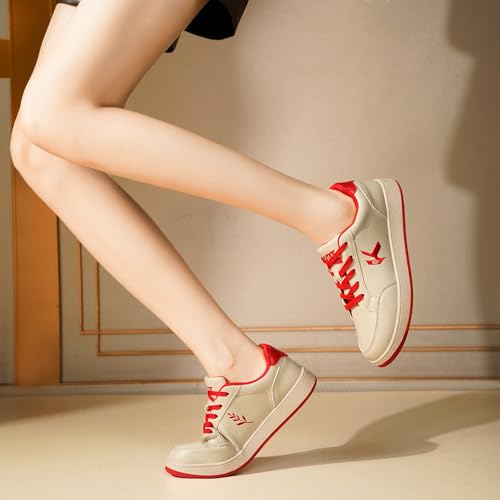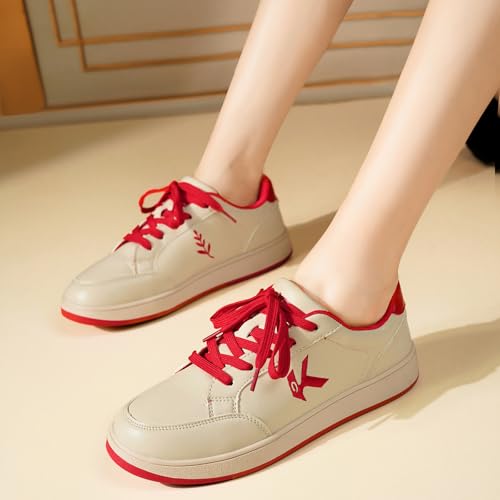 Women's Classic Fashion Sneakers Versatile Casual Walking Shoes Leather Comfort Skate Shoes Lightweight Non-Slip Flat Shoe Lace-up Minimalist Tennis Footwear