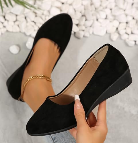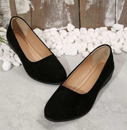 Women's Ballet Flats Business Office Work Dress Shoes Low Wedge Round Toe Slip-Ons Comfortable Dressy Casual Flats Shoes