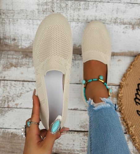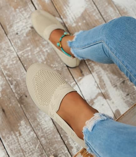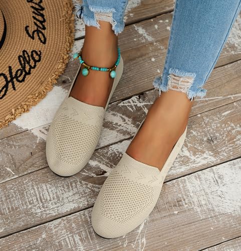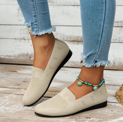 Women's Ballet Flats Knit Dress Shoes Comfortable Casual Dressy Shoes Work Flat Round Toe Slip On Ballerina Flats for Women