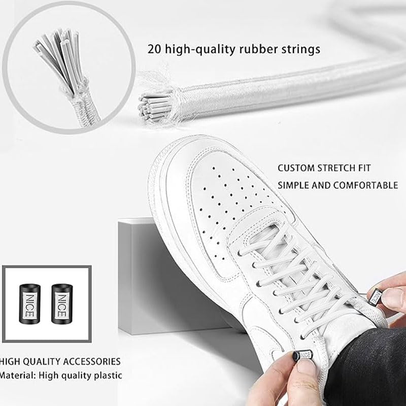 Generic Elastic No-Tie Shoe Laces (White, 2 Pair)