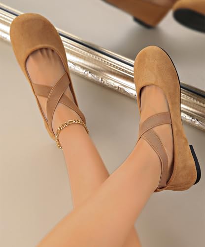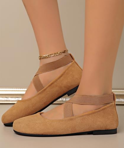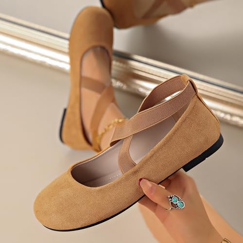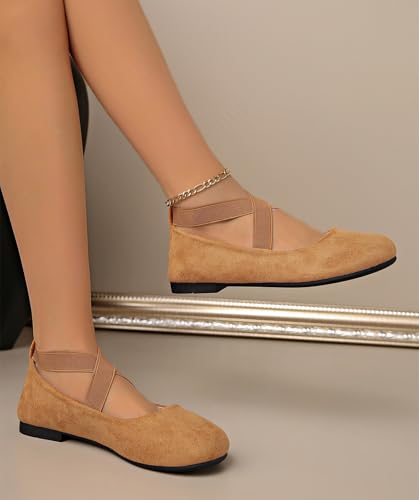 Women's Dress Flats Ballet Flat Shoes Round Toe Fashion Elastic Ankle Strap Comfortable Casual Flats Shoes