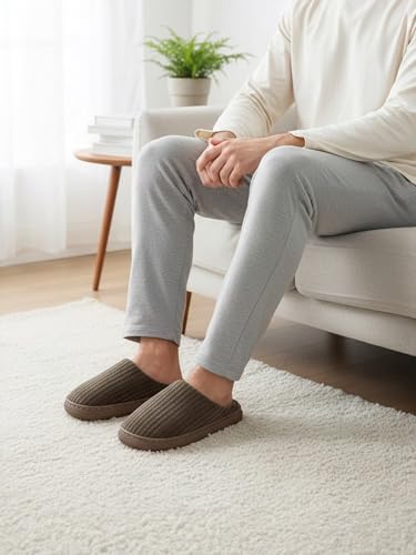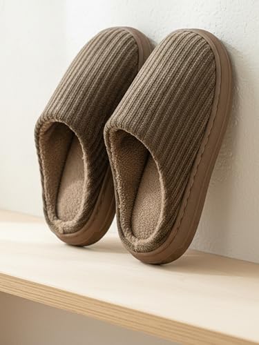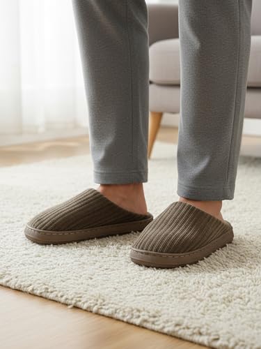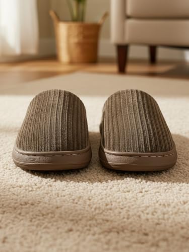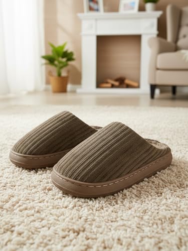 Ultra-Comfortable House Slippers for Men & Women, Memory Foam Indoor Slippers with Non-Slip Sole, Soft Plush Lined House Shoes for Home Use Brown