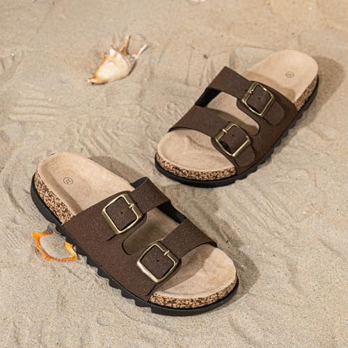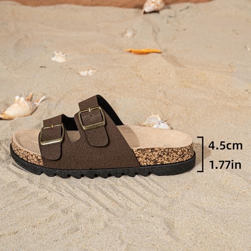 Women Slide Sandals with Double Buckle Comfortable Orthopedic Footbed Arch Support Flip Flops Summer Slippers