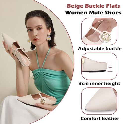 Women’s Pointed Toe Flats Sandals Slides Shoes with Strap Buckle