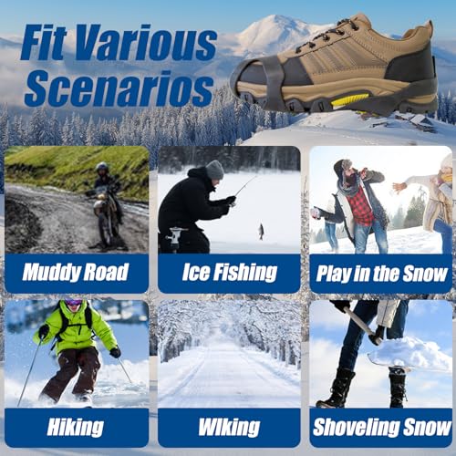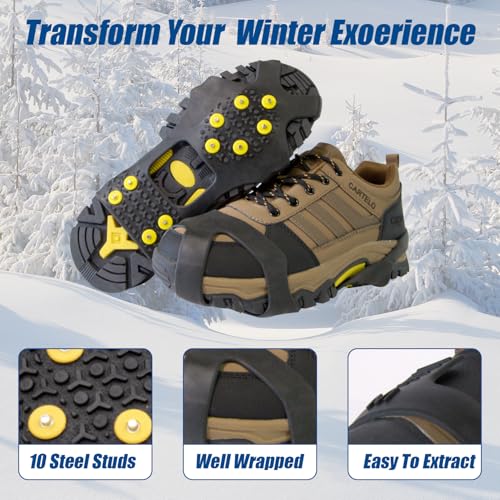 Ice Cleats, Ice Grippers Traction Cleats for Shoe and Boots Non-Slip Overshoe with 10 Steel Studs Cleats Prevent Outdoor Activities from Wrestling