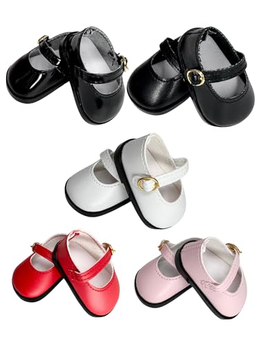 14.5" American Doll Shoes- Mary Jane Black,Red,White,Pink- Shiny Shoe (White)