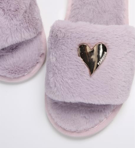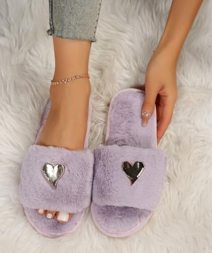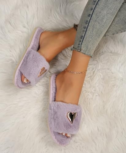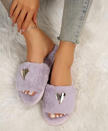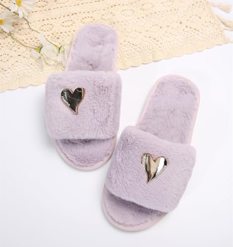 Womens Fuzzy Open Toe Slippers Soft Comfy Memory Foam Slip On Indoor House Bedroom Slides Slippers
