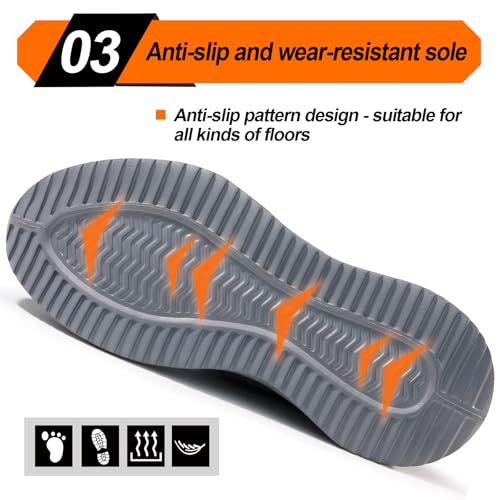 LAoutun Steel Toe Shoes for Men Work Shoes Safety Sneakers Comfortable Lightweight Puncture Proof Slip on Indestructible Construction Work Shoes