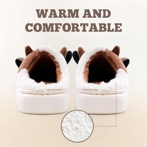 Cow Slippers for Women & Men - with Thickened Sole Plush Soft Non-Slip House Slipper, Winter Warm Fuzzy Platform Shoes with Comfort Memory Foam, Brown
