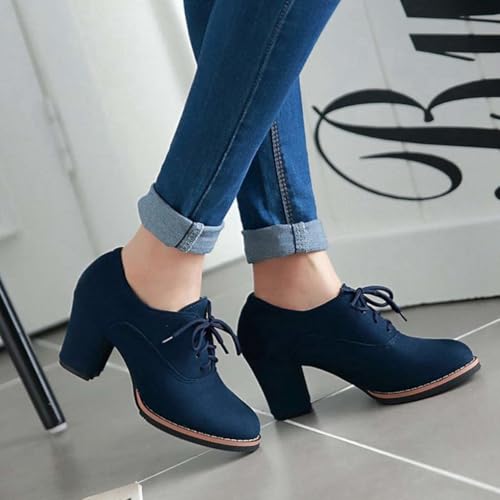 Generic Women’s Block Heel Pumps Comfort Oxfords Shoes Suede Lace up Dress Shoes Chunky Mid Heels Ankle Boots