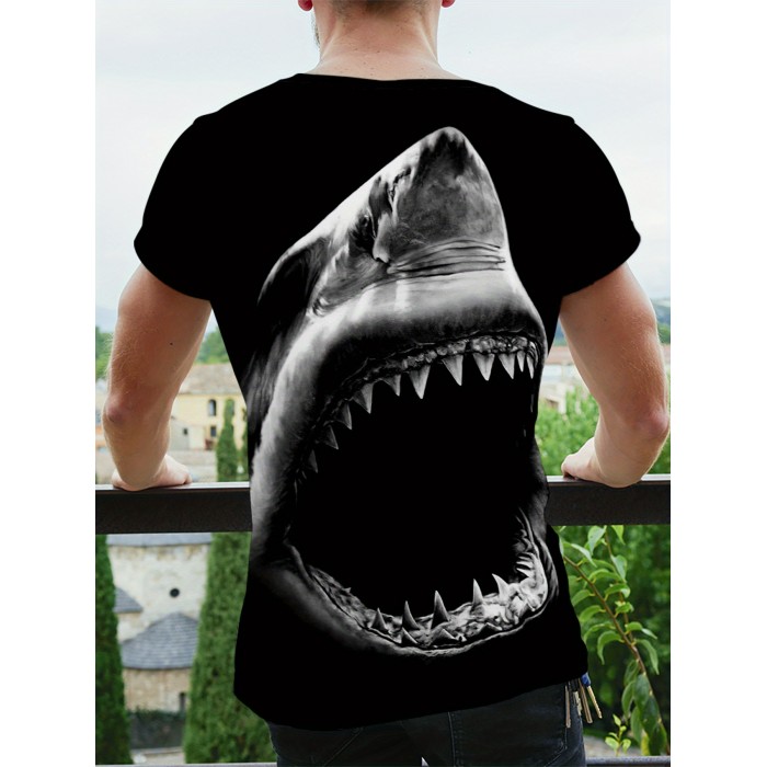 Men's Shark Print Graphic Design Active T-shirt - Casual and Comfy Tee for Summer, Gym, and Running