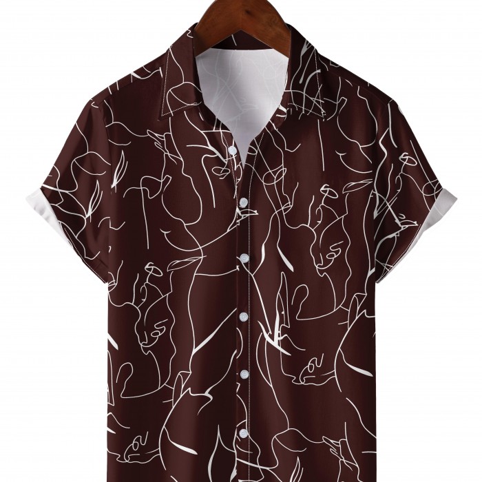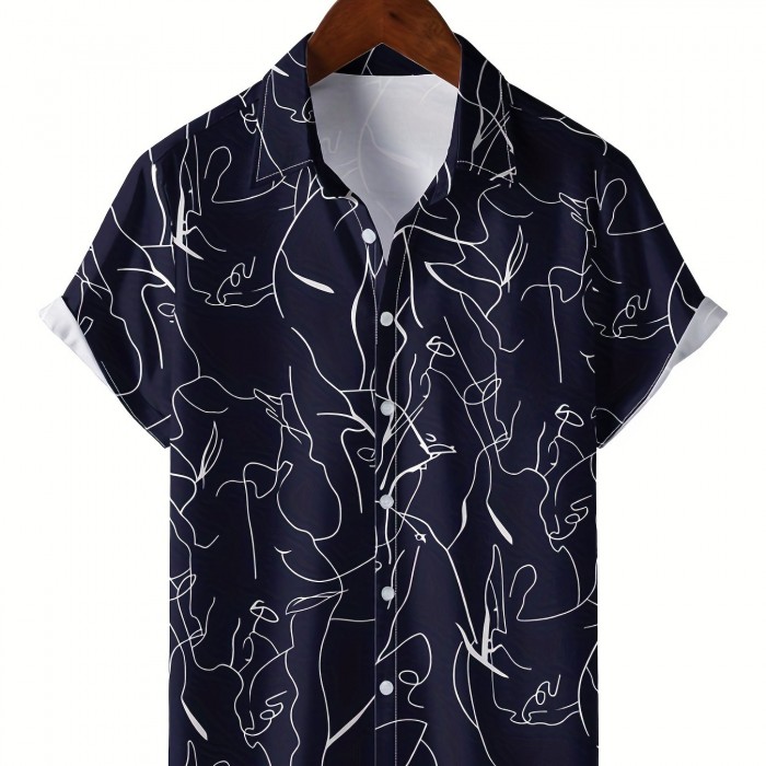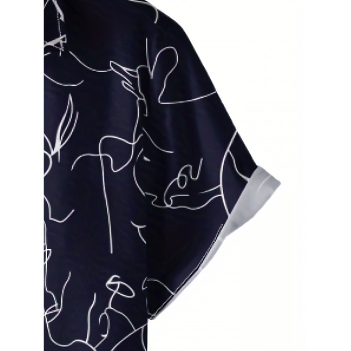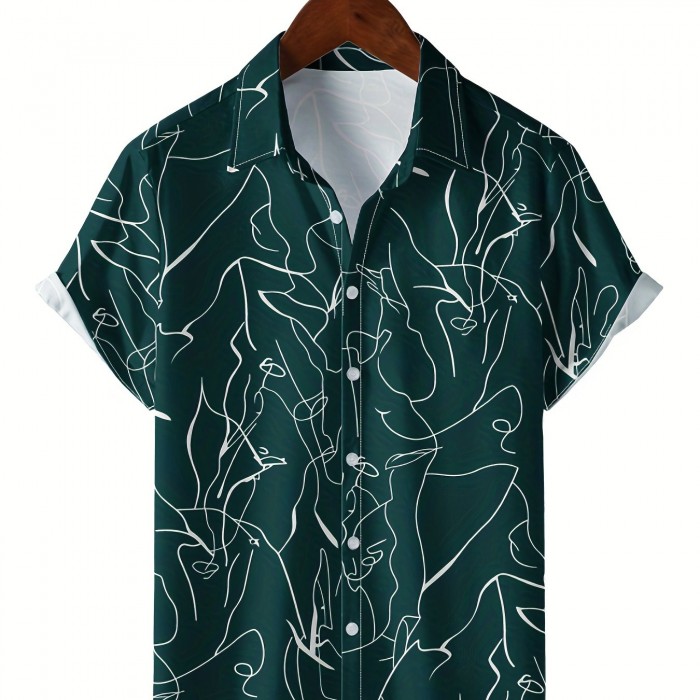 Men's Shirt Top, Abstract Pattern Camp Collar Bowling Shirts Short Sleeves Closure Summer Hawaiian Shirt Male Casual Button Up Shirt For Daily Vacation Resorts Beach Shirts For Men