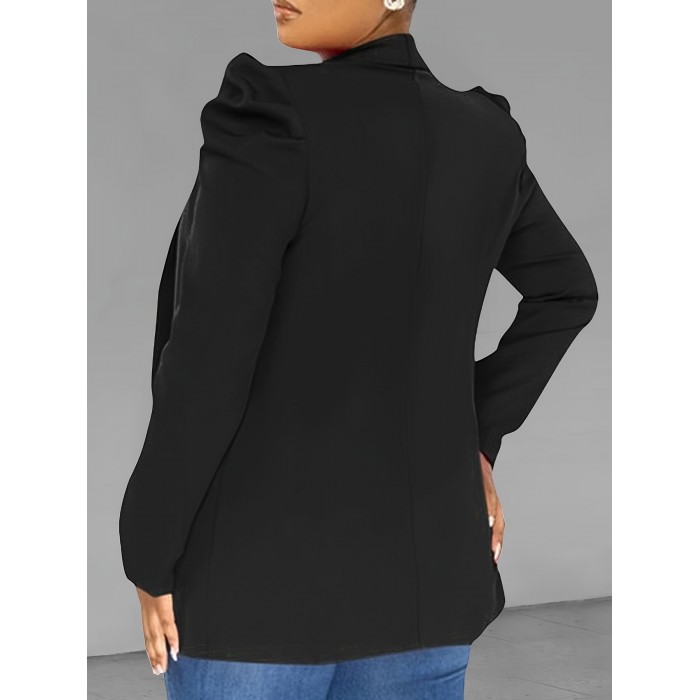Elegant Solid Open Front Blazer with Long Sleeves for Women - Stylish Work Office Outerwear
